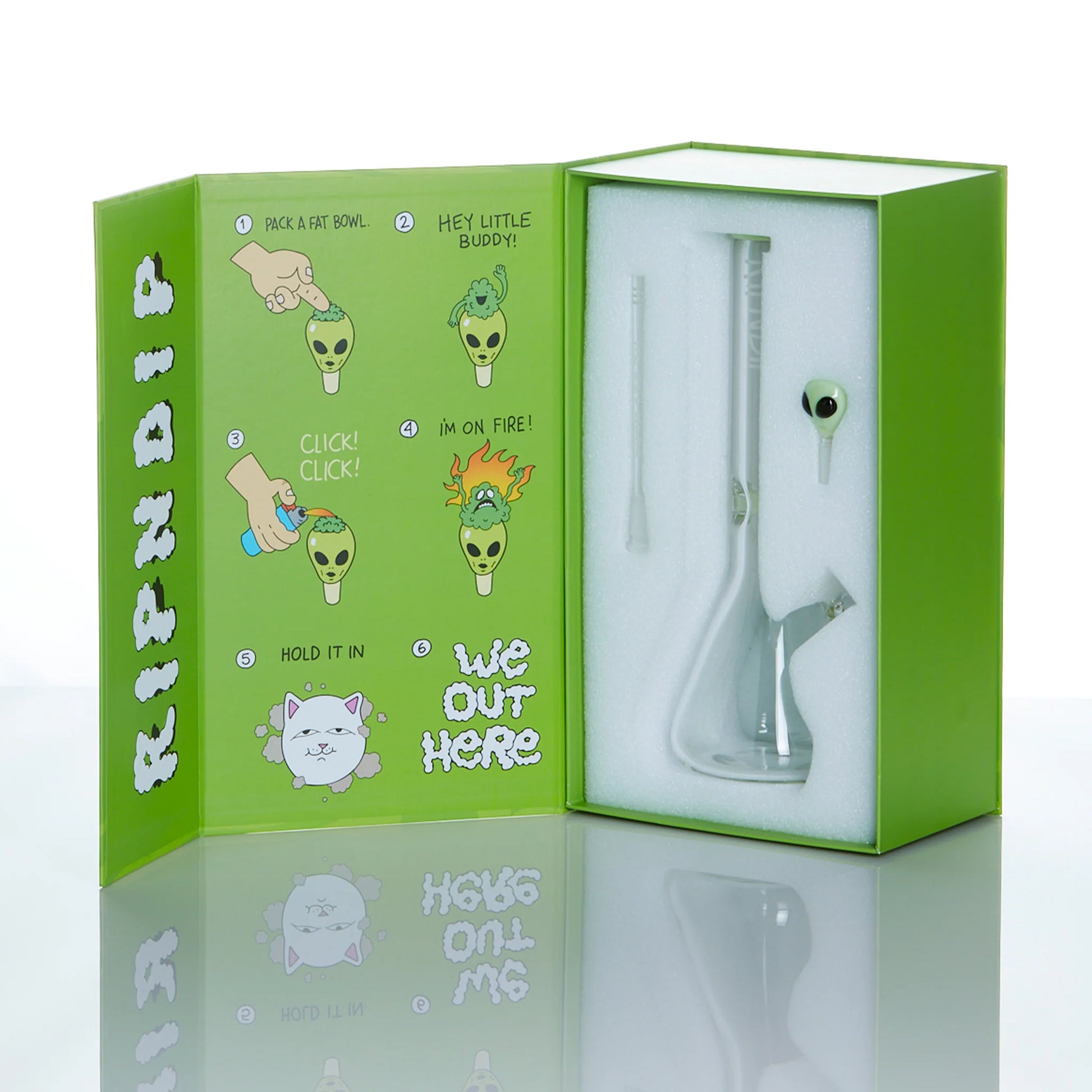RIP N DIP WE OUT HERE GLASS BEAKER GREEN