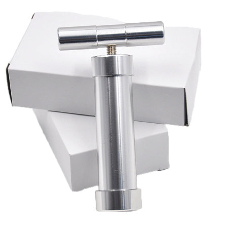 Compact pollen press for compressing herbs into solid discs. Easy to use, portable, and built from durable metal for long-lasting performance.